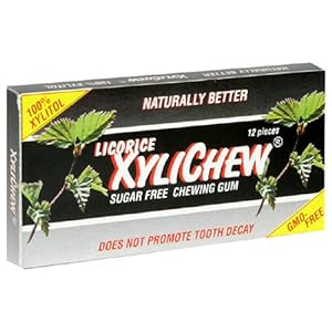 XyliChew Sugar Free Chewing Gum, Licorice, 12-Count Packages | Access the most advanced RSS tools and use them to your advantage. | 2013-04-07 14:19:00.432098-04 Category: Grocery & Gourmet Food Vendor: Case of 24 12-count packs (total of 288 pieces) Sugar-free licorice gum sweetened with 100% xylitol Low-calorie; low-carbohydra  Product Description : Product Description : Sweetened with all-natural xylitol, XyliChew Licorice gum makes a flavor-packed refreshing snack. This naturally sugar-free gum is designed for healthier teeth and gums, and does not promote tooth decay. Safe for diabetics, XyliChew is a refreshing low-calorie, low-carbohydrate snack that's GMO-free, sweet, and juicy. Made in Finland, XyliChew comes in a wide range of natural flavors, including Peppermint, Spearmint, Fruit, Chocolate, Licorice, and Cinnamon. Product Description : Xylitol is a safe and natural sweetener made from Birch that promotes good health. Xylitol decreases plaque formation and adhesion, cuts off dental acid attacks, hardens tooth enamel and repairs small emerging cavities. It has a cooling effect in the mouth, leaves no aftertaste, and is an ideal sweetener for a gum. Find out more | |